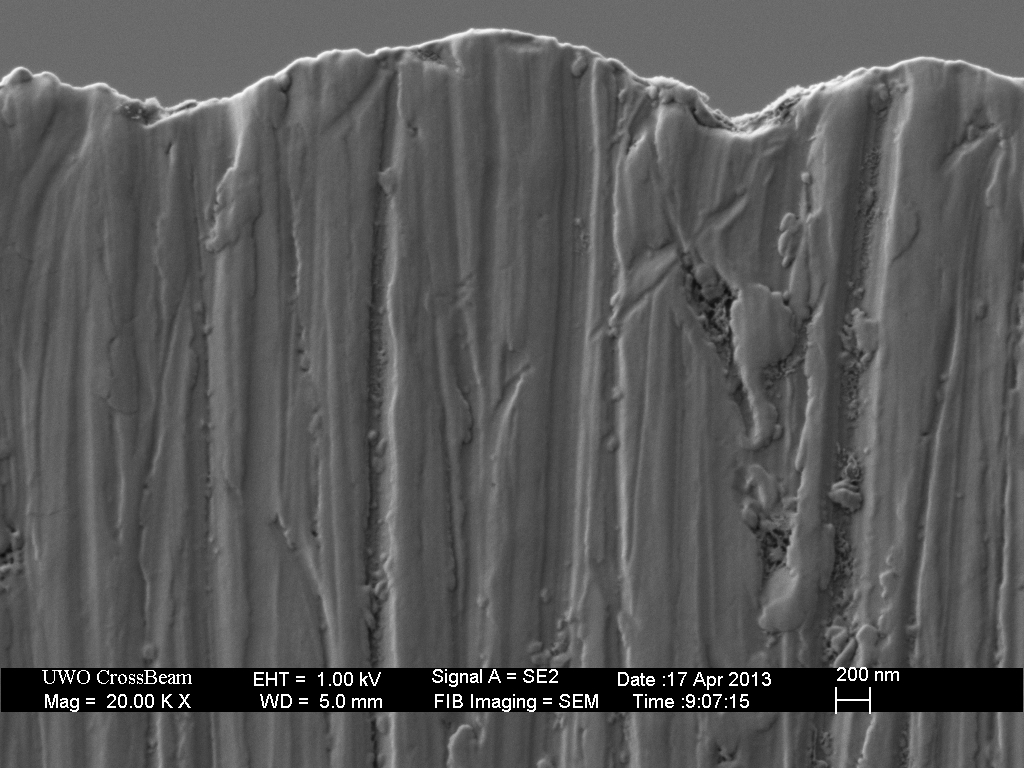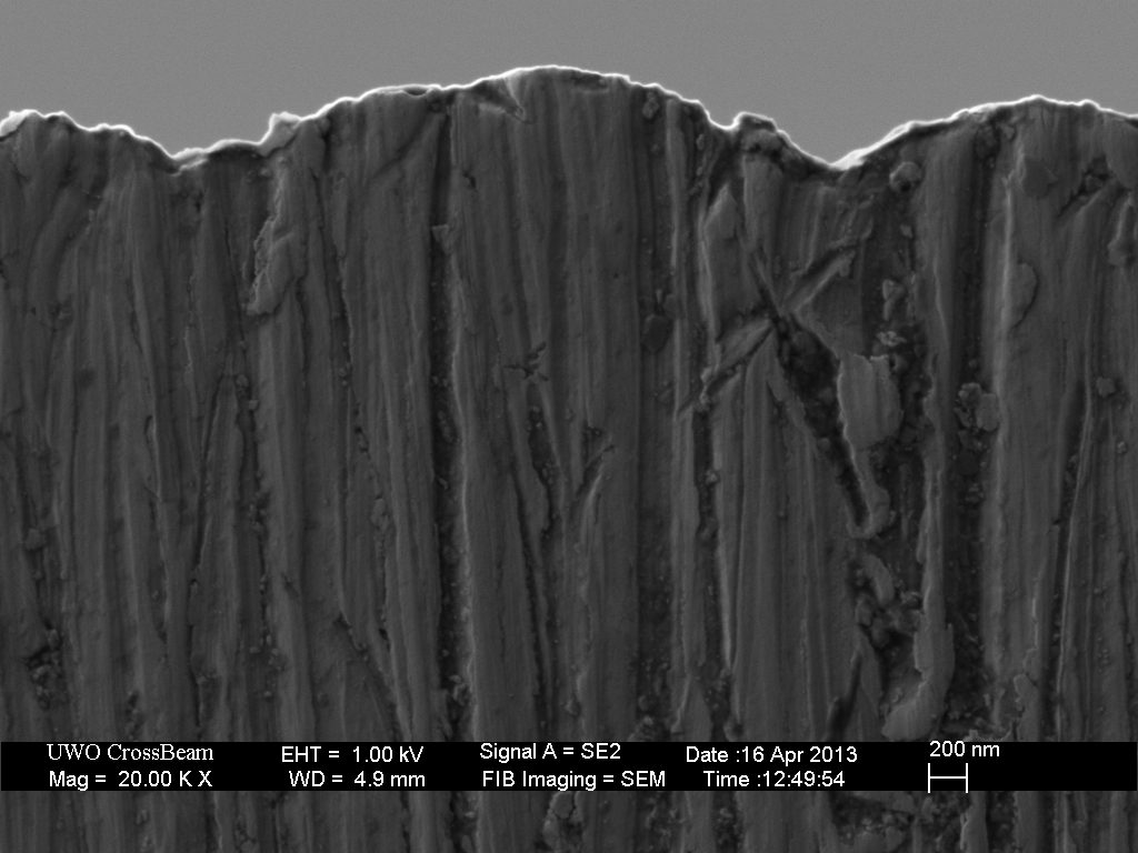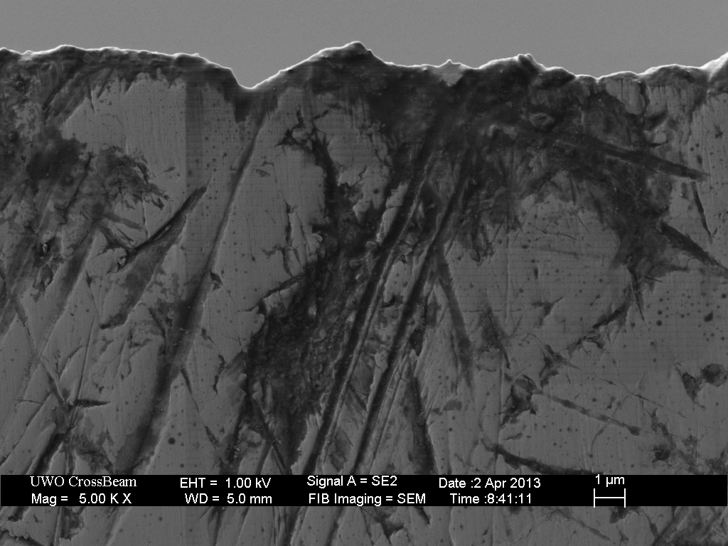 My interpretation of the comments in John’s manuscript is that the stropping effect is not visible at the resolution and contrast provided by his SEM images.