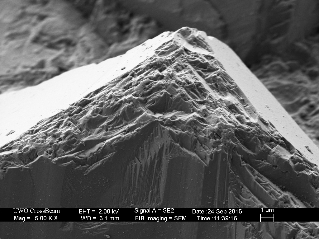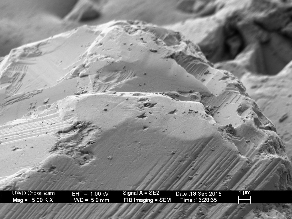 None of the over-sized diamonds in the as-received plate that I looked at (about 20) had a smooth area on the top surface. I took images from a few of those as “before” shots, but all of them were lost during break-in. I did not image that particular diamond before, so I can’t be sure.