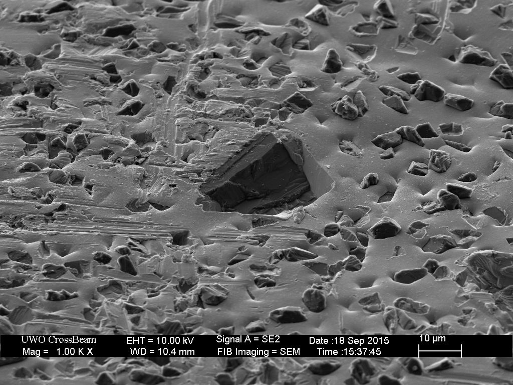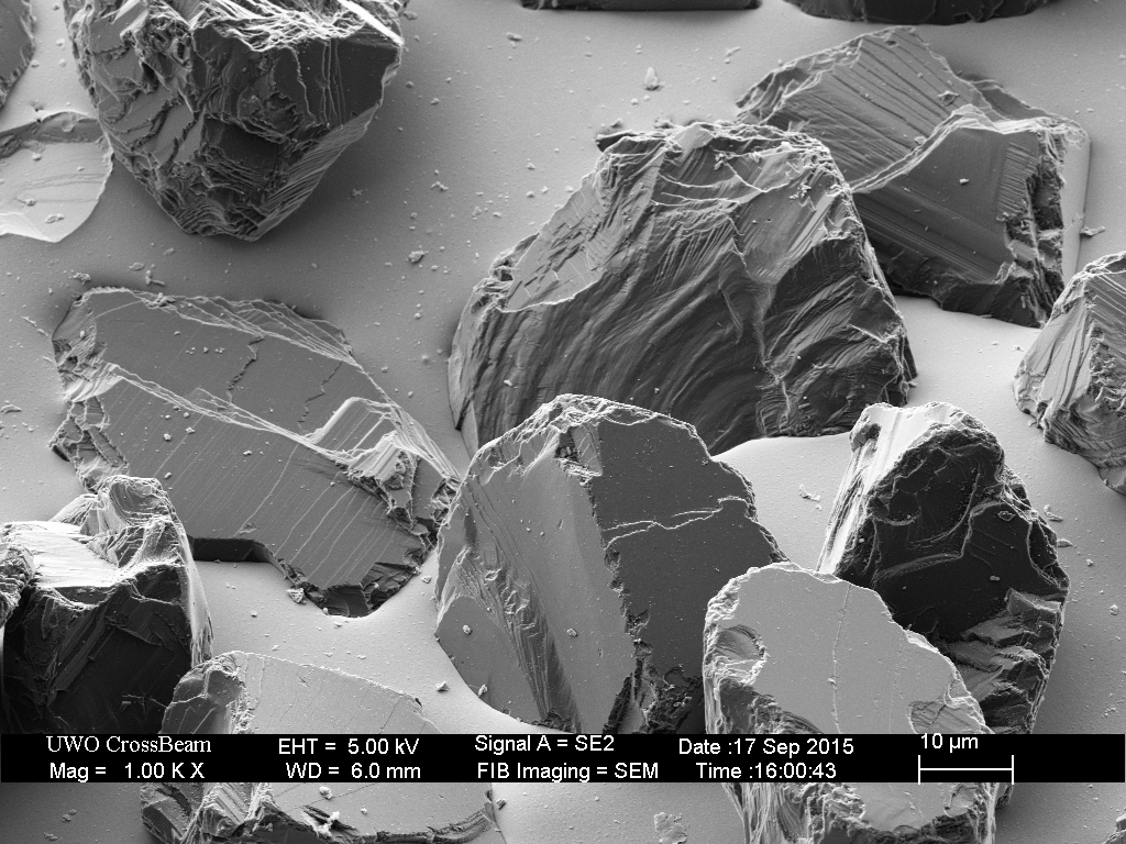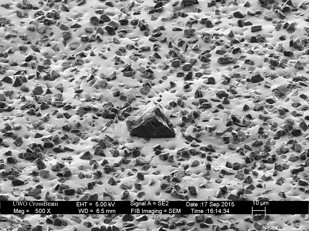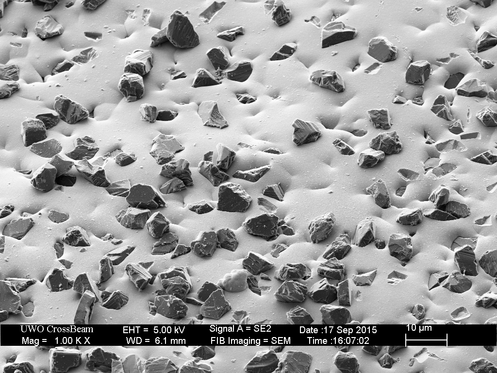 The break-in procedure affects the extra-fine (9 micron) particles as well. The less well adhered diamonds fall out, and many are broken.