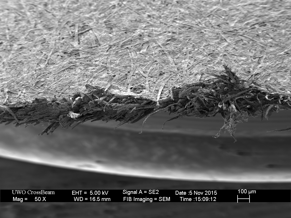 These can also be compared to paper cut by scissors, where a straight edge is produced by shearing and crushing the fibers. Each of these separations involves a different microscopic mechanisms, and likely different separation energy or fracture toughness.